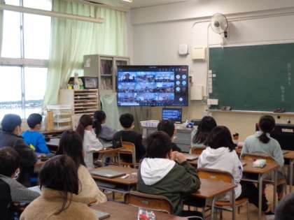 一生懸命にがんばる安立小学校の児童の姿が、各教室に映し出されていました。