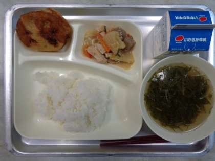 ♦けいにくのどてやきふう♦はりはりじる♦れんこんのフライおおさかソースあじ♦ごはん♦ぎゅうにゅう