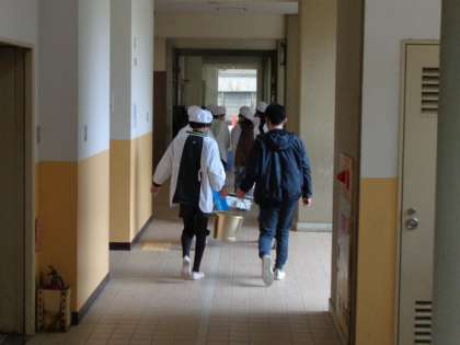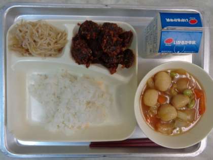 (今日の給食の「くじらのオーロラ煮」は、油であげたくじらに、ケチャップや赤みそなどで作った たれ をからませています。)