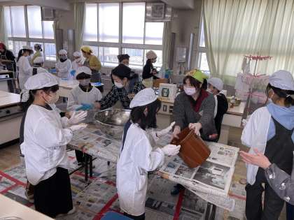 2月9日(木)、5年生も、昨年度コロナ禍で実施できなかった『味噌作り』を行いました。白味噌と赤味噌の違いを教えていただいたり、発酵食品の良さを教えていただいたり、学び多き時間でした。はぐくみネットのみなさん、PTA保護者のみなさん、ありがとうございました!!