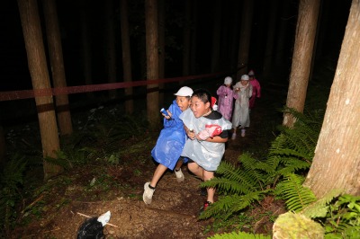 洞川温泉の帰りの「きもだめし」の様子です。ナイス リアクション!