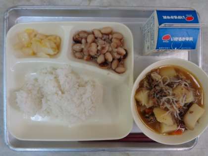 ♦にくじゃが♦はくさいのゆずふうみ♦とらまめのにもの♦ごはん♦ぎゅうにゅう