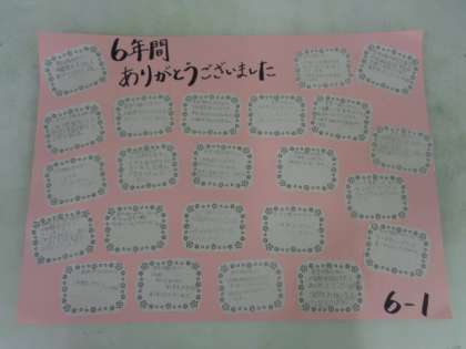 写真上 6年1組の寄せ書き