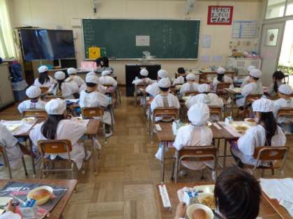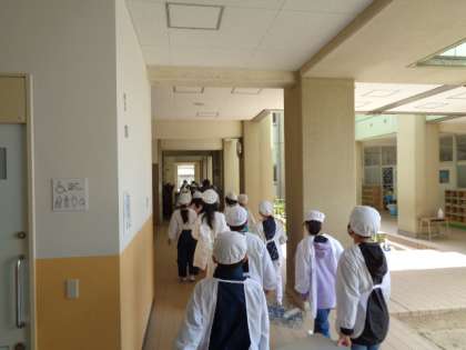 〇給食当番は、協力して安全に運び、じょうずにもりつけましょう。