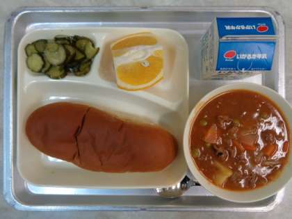 ♦ビーフシチュー♦きゅうりのサラダ♦あまなつかん♦こくとうパン♦ぎゅうにゅう