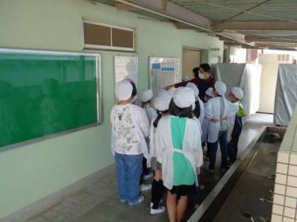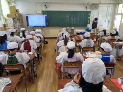 今日は、給食室でさやから取り出した生のえんどうを使っていました。