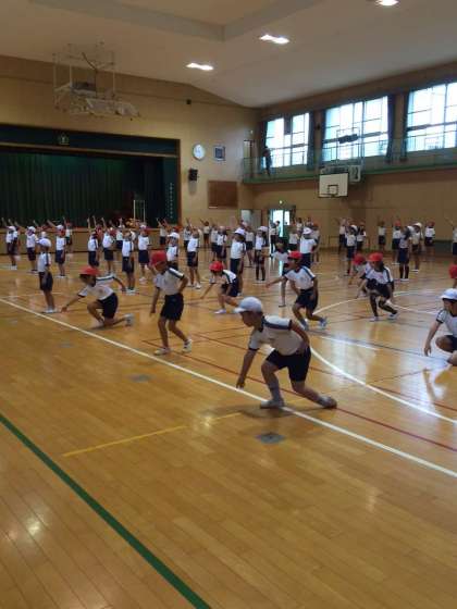 4年生は、和太鼓で勇ましく入場します。「ドン!!」と鳴る和太鼓の合図に合わせ、全員で勇壮なポーズを決めていきます。