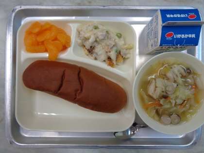 ♦マカロニグラタン♦キャベツのスープ♦みかんのかんづめ♦こくとうパン♦ぎゅうにゅう