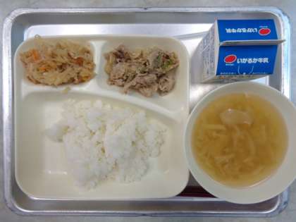 ♦ぶたにくのごまみそやき♦すましじる♦きりぼしだいこんのいために♦ごはん♦ぎゅうにゅう