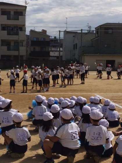安立小では、運動会の直前に1・2年と3・4年と5・6年がペアになって、それぞれの団体演技を見る日を設定しています。学年に応じた頑張りやよさなどより多く感じられる機会になるように行っています。