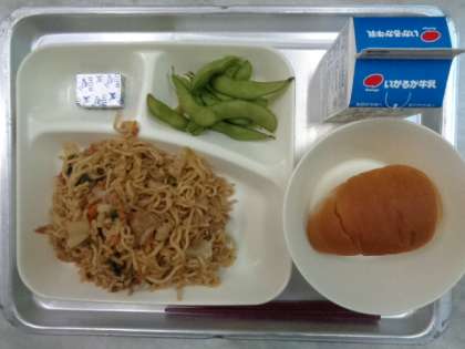 ♦オイスターソースやきそば♦えだまめ♦こけいチーズ♦こくとうパン(小)♦ぎゅうにゅう