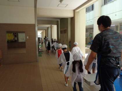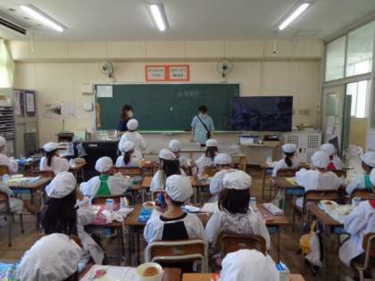 給食のオイスターソースは、かきに水あめやしょうゆ、さとう、塩などで味つけし、加熱して作られています。