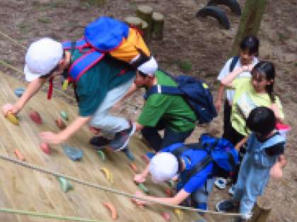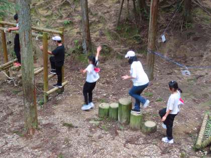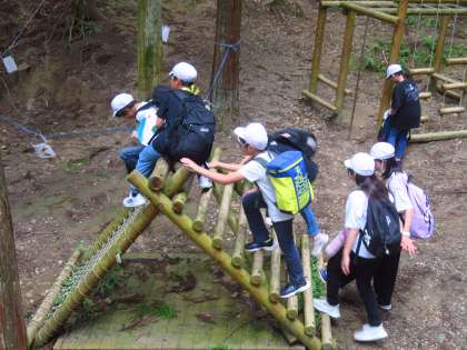 怪我をしないように気をつけながらアスレチックに挑戦したり、班ごとの写真を撮ってもらったりしました。曇り空でしたが、塩分チャージもしていました。
