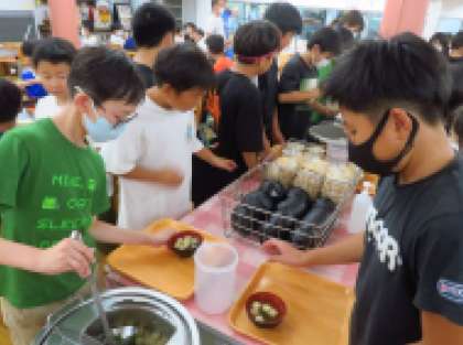 食事係は、みんなのご飯と汁物をよそったりお箸を配ったりします。