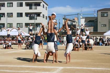 運動会が終わって、はや5日。感動が覚めないうちに、総集編をお送りします。まずは、6年生の組体操からです。