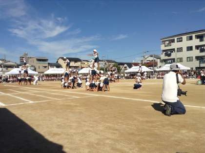 水平を保つために背中を張って腕の曲げ方を変えて…。技を決めるには、ちょっとした調節も必要です。