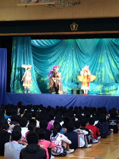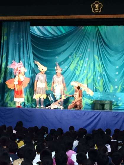 劇団如月舎の方が学校の講堂で劇の講演をしてくださいました。「キンギョの転校生」という話でした。