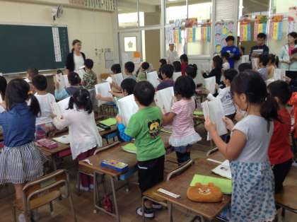 10月14日(水)に1年生の授業研究を行いました。たくさんの先生に観察されて少々緊張気味でしたが、思ったことをしっかりと答え、自分の思いをワークシートに文章で表現することができました。