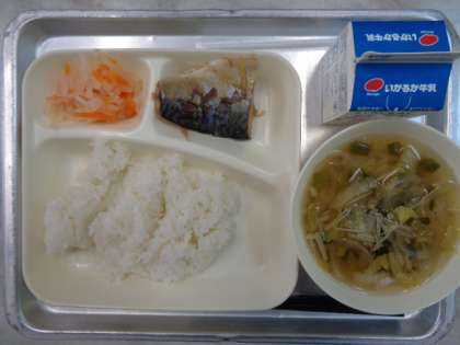 ♦さばのみそに♦すましじる♦こうはくなます♦ごはん♦ぎゅうにゅう