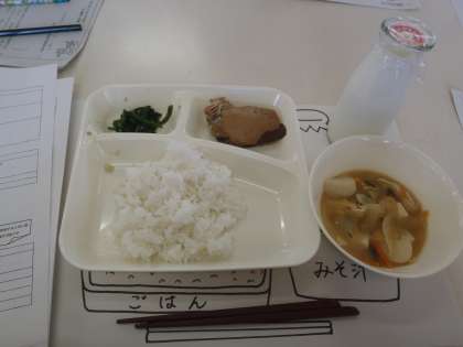 10月28日(水)PTA保健給食委員会主催の給食試食会が行われました。献立は、なまりぶしのしょうが煮、みそ汁、ほうれん草のごまあえ、ごはん、牛乳でした。栄養教諭から「学校給食の概要、衛生管理について、おやつのとり方」などの話がありました。また、給食調理員から「おいしい給食を作るための食材の品質管理、安全な給食提供のための作業工程、作業動線の計画」などの話がありました。「安心、安全、おいしい給食」をめざし、給食提供している苦労を感じ取っていただけたことでしょう。