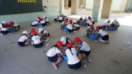 うわぐつ洗いの サプライズ!!(きょうだい学級の1年生より〜修学旅行中の6年生へ)