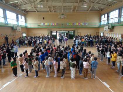 3月7日(木)、1時間目に講堂で6年生の卒業をお祝いする「卒業を祝う会」を実施しました。