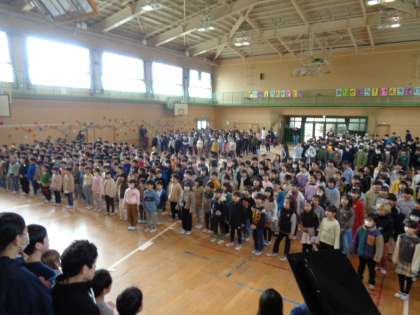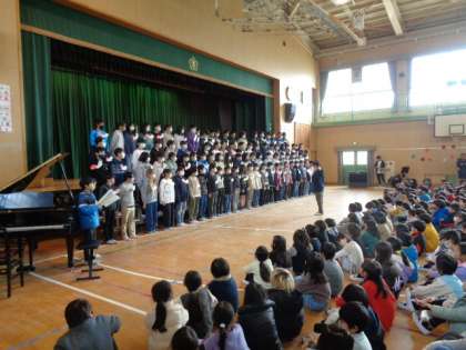 各学年それぞれ練習してきた歌や呼びかけ等を6年生に披露しました。そして6年生も最高学年としてすばらしい歌を聞かせてくれました。