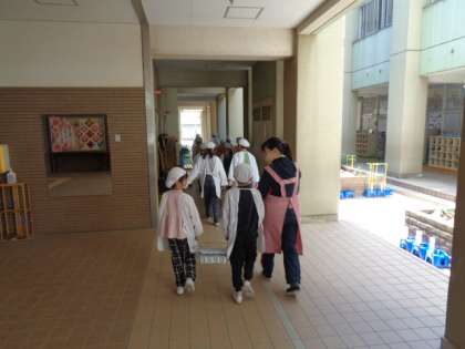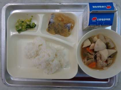♦さごしのおろしじょうゆかけ♦さといもとやさいのふくめに♦なのはなのおひたし♦ごはん♦ぎゅうにゅう