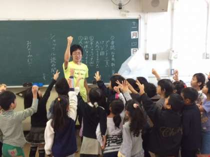 11月4日(水)の朝の時間に、恒例の教員総入れ替わりで行うシャッフル読み聞かせを行いました。2年1組には、特別支援担当の秋山先生が読み聞かせに行きました。