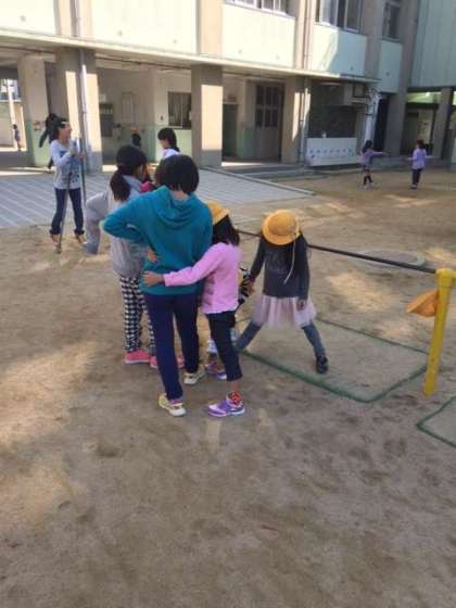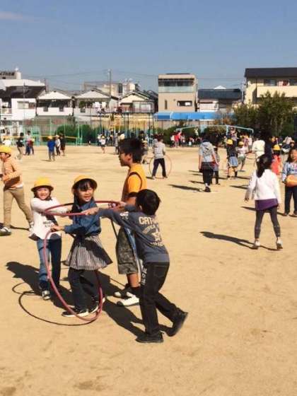 毎週金曜日の20分休みは、「なかよしタイム」です。きょうだい学級(1年と6年、2年と4年、3年と5年)をきょうだい学級として週に1回の遊びを通して異学年の交流を深めています。