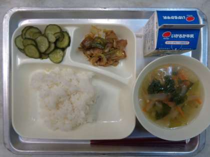 💎ホイコウロー💎ちゅうかスープ💎きゅうりのピリからあえ💎ごはん💎ぎゅうにゅう