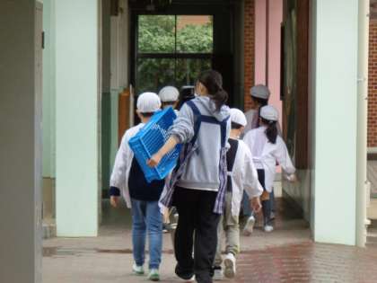 (今日の給食では、豚ばら肉をゆでてから、ほかの材料と一緒に炒めていました。)