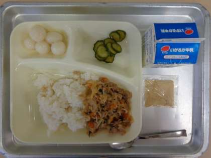 💎ぶたどんぶり💎きゅうりのうめふうみ💎しらたまだんご[きなこ]💎ぎゅうにゅう