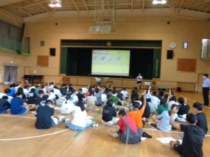 6月21日(金)3時間目に、あべの市税事務所の方々にお越しいただき、6年生は体育館で税金についての出前授業を受けました。