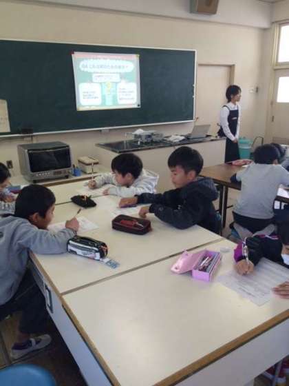 プリマハムの方が来られて、食品に関する出前授業を行いました。食べ物の保存方法や賞味期限と消費期限のちがい、食品の成分などについて学びました。「日本で食べられるのに捨てている食品の量が、日本から世界中に向けて援助している食品の量より多い。」と聞いて驚いた子もいました。「食べ物を無駄にしない」コツについて学びました。