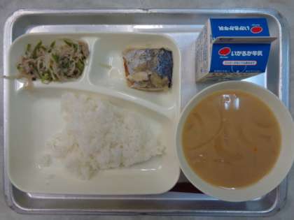 💎さごしのおろしじょうゆかけ💎みそしる💎やさいいため💎ごはん💎ぎゅうにゅう