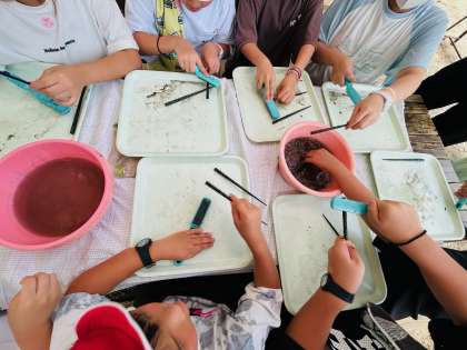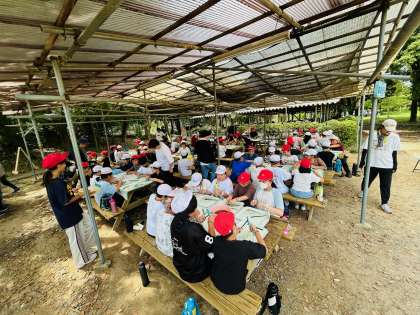 2日目を迎えました。起床後、朝の集い、朝食、荷物整理を済ませ、マイ箸づくりに取り組みました。