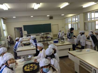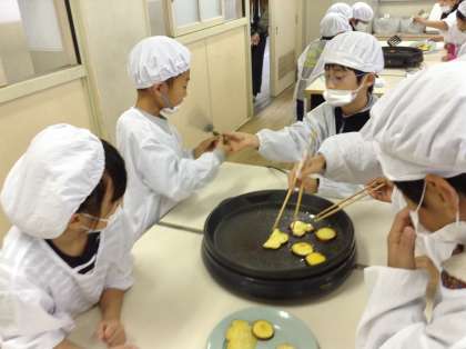 11月26日に2年生は、さつまいもクッキングをしました。ホットプレートを使って、さつまいもをマーガリンで焼きました。ふかしイモも作って食べくらべをしました。