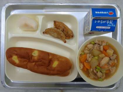 💎あげギョーザ💎けいにくととうがんのちゅうか💎なし(ほうすい)💎おさつパン💎ぎゅうにゅう