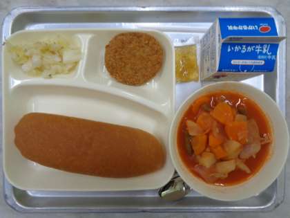 💎チキンレバーカツ💎ケチャップに💎キャベツのバジルふうみサラダ💎コッペパン(添加物:マーマレード)💎ぎゅうにゅう