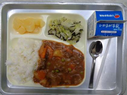 💎ハヤシライス💎キャベツのひじきドレッシング💎はくとうのかんづめ💎ぎゅうにゅう