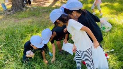 秋探しとして、まつぼっくりやどんぐりもたくさん見つけることができました。子どもたちは一生懸命、探していました。