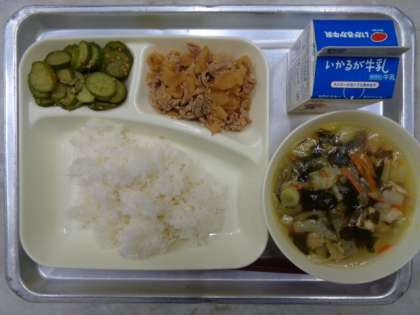 💎ぶたにくのコチジャンいため💎けいにくとはるさめのスープ💎きゅうりのナムル💎ごはん💎ぎゅうにゅう