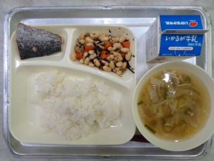 💎さごしのごまじょうゆかけ💎すましじる💎だいずのにもの💎ごはん💎ぎゅうにゅう