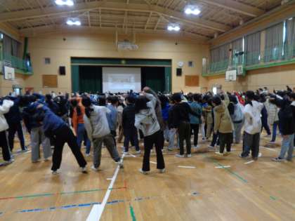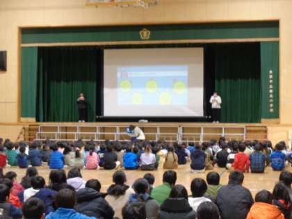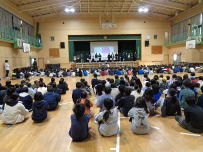 講堂ですこやか委員会の発表を行いました。今年度も、1年間のまとめとして、学校保健委員会として実施しました。