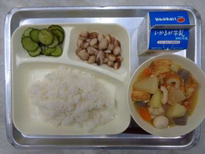 💎かんとうに💎きゅうりのうめふうみ💎とらまめのにもの💎ごはん💎ぎゅうにゅう