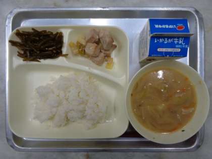 💎まぐろのあまからやき💎ぶたじる💎くきわかめのつくだに💎ごはん💎ぎゅうにゅう
