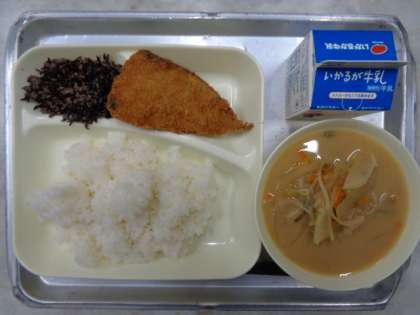 💎いわしフライ💎みそしる💎ぎゅうひじきそぼろ💎ごはん💎ぎゅうにゅう