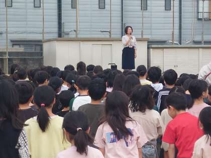 校長先生から、「ゴールデンウイークが始まるにあたっての心のお話」「万博のお話」がありました。
