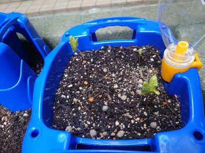 どの子も植木鉢からも、先週にまいた種から芽がチラホラ出てきています。